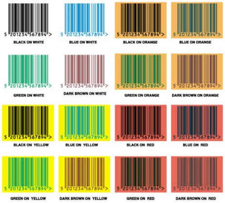 Chart 1 : shows combinations of colors that have enough contrast (more than 63%) to be scanned.