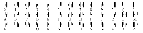 1.Calculate the upper half and lower half values for each data character. A character is splitted horizontally into an upper half and a lower half. From the right to the left assign each bar a weight. The rightmost bar has a weight of 0, and the second rightmost 1, and third 2 and the leftmost 4.